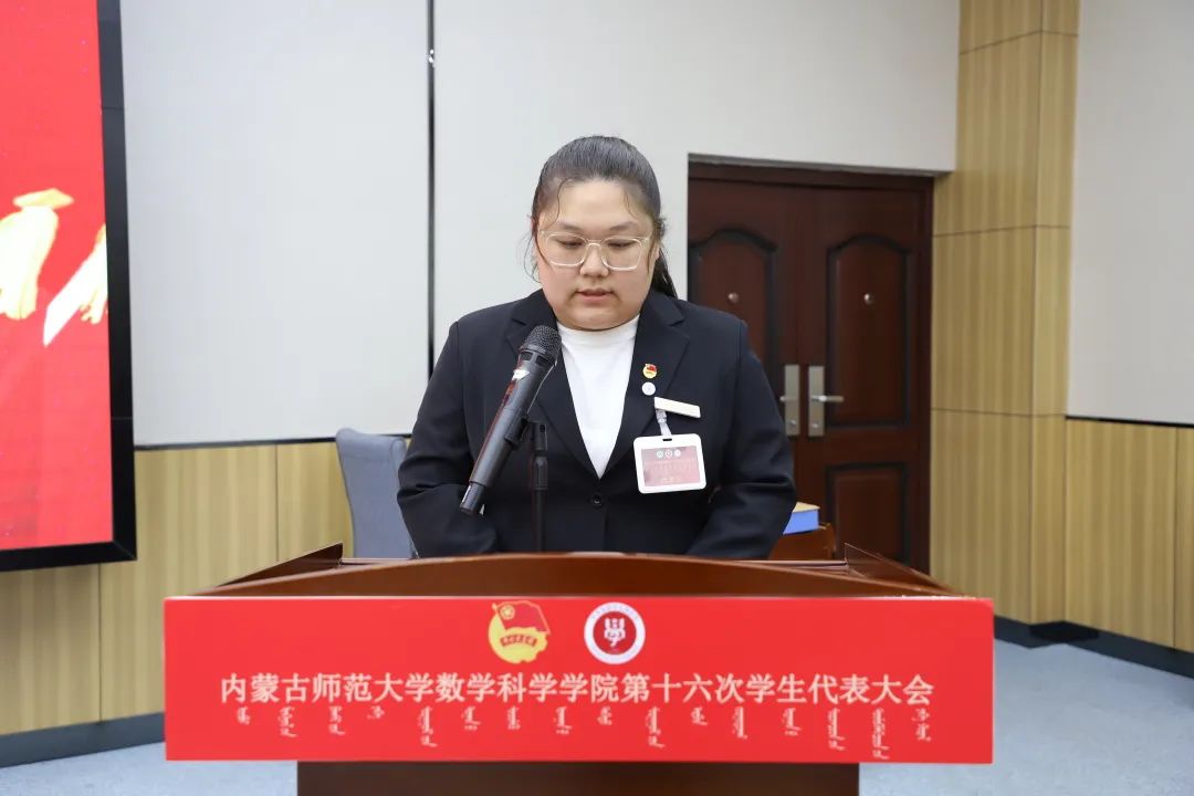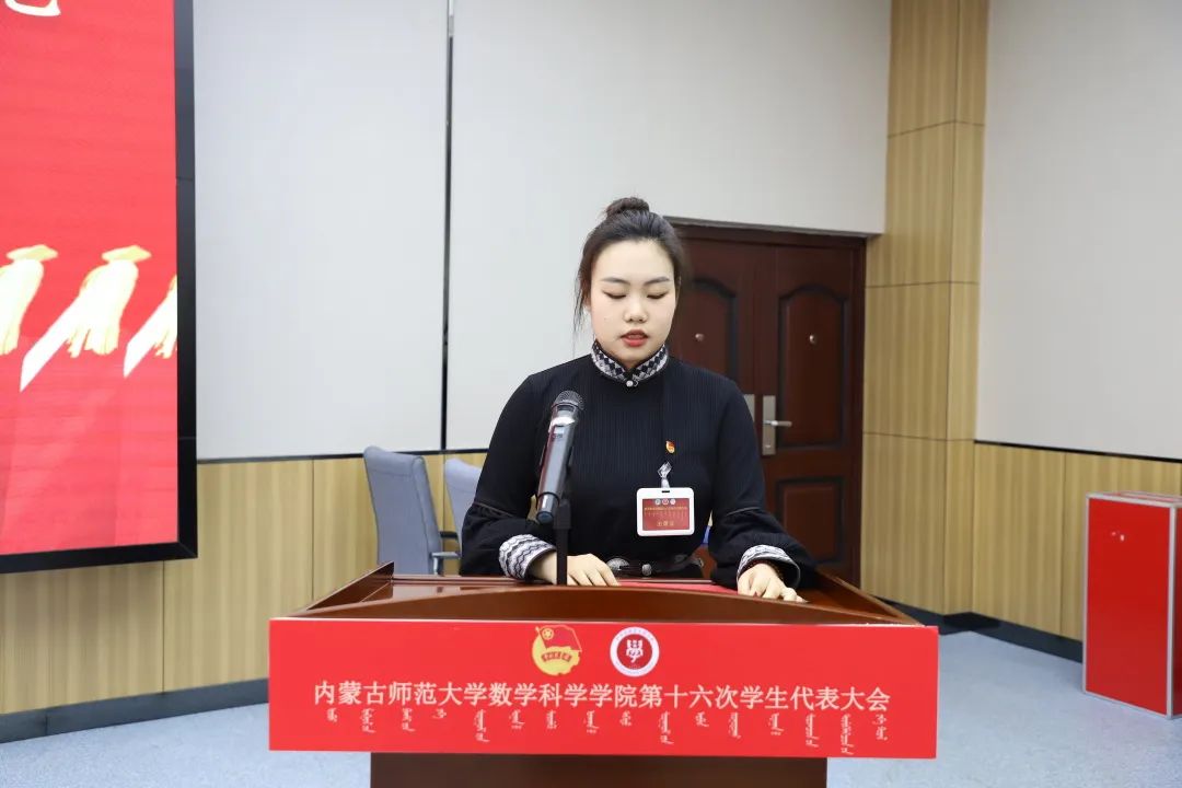 大会第六项,郑瑞琪同学宣读《yl6809永利检测中心第十六次学生代表大会代表资格审查委员会关于代表资格的审查报告》