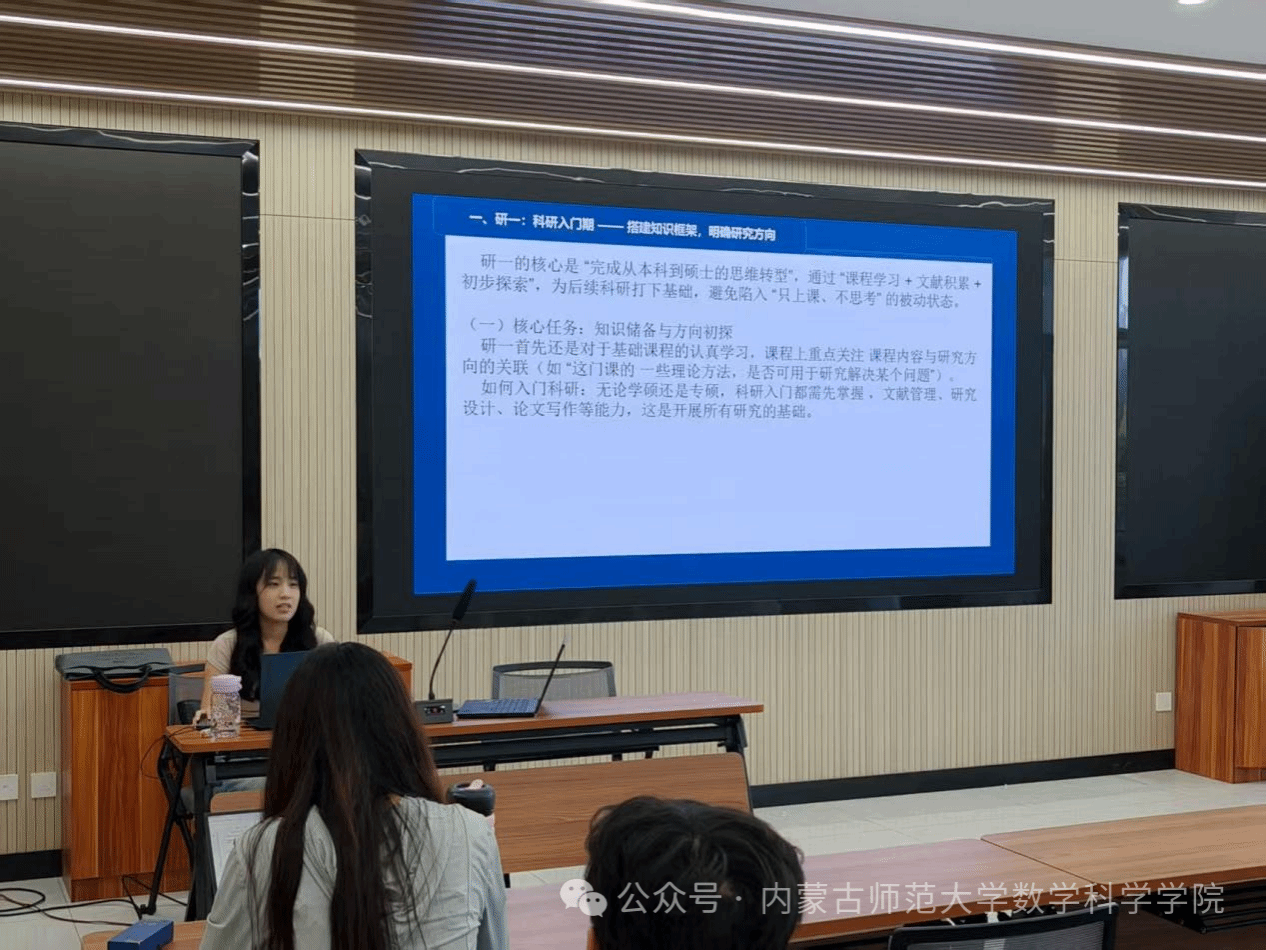 研究生教学秘书梁胡义乐、学生工作与就业办公室主任刘沙沙、副主任萨如拉从选课、学业指导到日常管理、制度、奖助政策解读,帮助新生全面了解研究生阶段与本科阶段的差异,熟悉校园关键资源与学术规范。