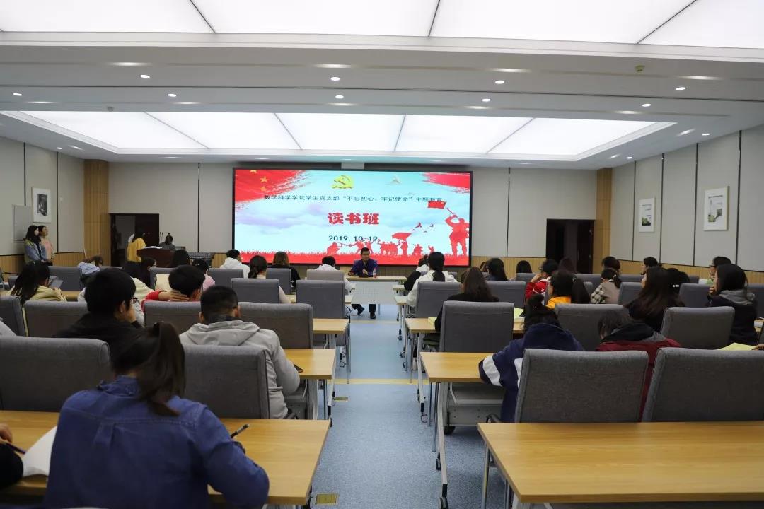 2019年10月19日,yl6809永利检测中心学生党支部于学生事务中心举办“不忘初心,牢记使命”主题教育读书班活动。yl6809永利检测中心数学与应用数学学生党支部书记皮建东带领各位学生党员、预备党员进行自主学习并进行学习心得交流。通过主题教育,读原著、学原文、悟原理,深切感受习近平总书记系列重要讲话精神,用新担当、新作为践行初心和使命。