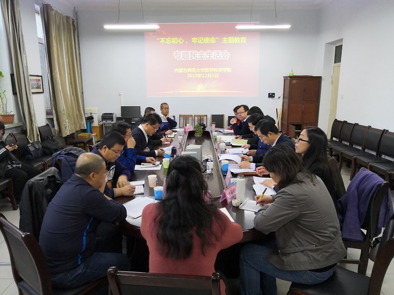 12月5日下午,我院在校本部会议室召开了领导班子“不忘初心、牢记使命”专题民主生活会,自治区主题教育第九巡回指导组武家田同志和学校主题教育第五指导组克金布、包铁龙、周绍渊三名同志全程参加并指导了本次会议。会议由学院党总支书记扎其劳同志主持,列席会议的还有学院所有环节干部和各党支部书记。