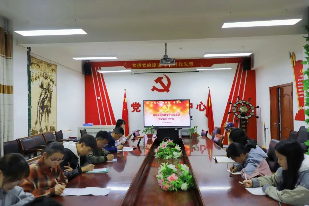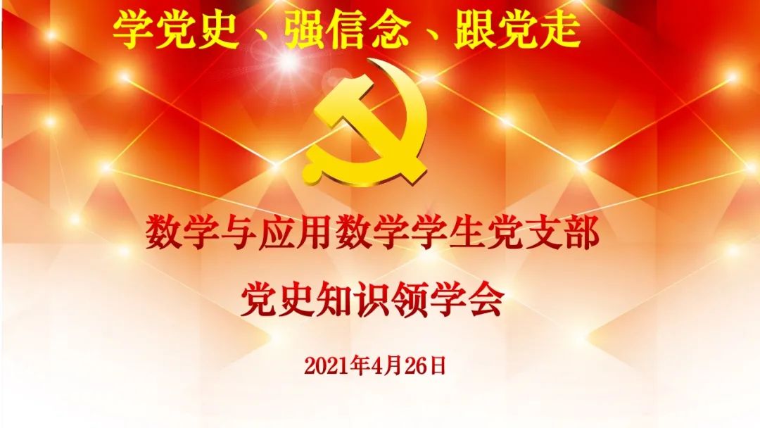 为引导我院青年学生了解党的光辉历史、感悟党的初心使命、领会党的创新理论、体会党的精神谱系、传承党的红色基因,2021年4月26日晚上7点,我院于会议室开展了数学与应用数学学生党支部党史知识领学会。本次活动以线上线下相结合的方式,由学院团总支书记皮建东老师主持,数学与应用数学学生党支部全体党员参加。
