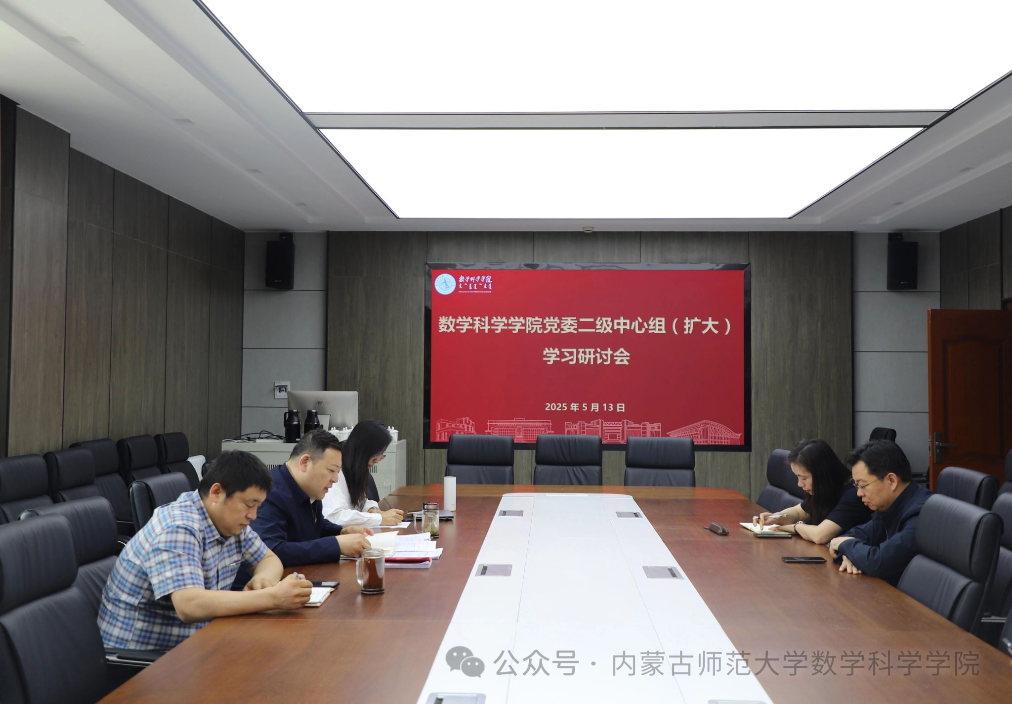 5月13日,yl6809永利检测中心党委理论学习中心组在盛乐校区学院楼C206会议室召开2025年度第五次集体学习研讨会,学院党委书记张伟主持会议,学院领导、党委委员、各支部书记以及部分环节干部参会。