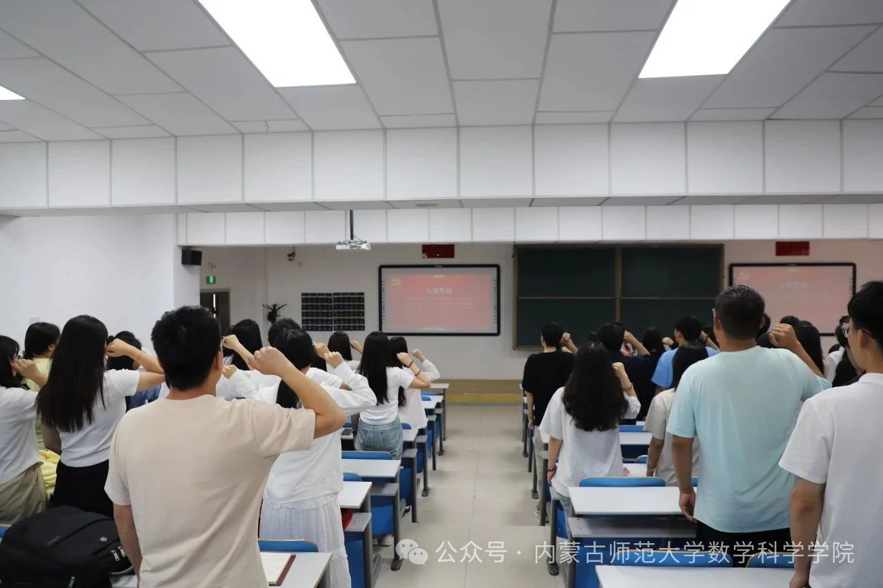 学生第一党支部书记阿茹罕立足深入贯彻中央八项规定精神学习教育,强调毕业生党员要带头践行勤俭节约作风,坚决抵制违规聚餐行为,将中央关于厉行节约、反对浪费的要求转化为具体行动。学生第二党支部书记刘沙沙围绕文明离校主题,系统讲解校园安全、毕业手续办理等注意事项;研究生党支部书记萨如拉从严守组织纪律高度,讲解了党团组织关系转接流程,强调党员组织生活的严肃性。活动最后,全体党员通过重温入党誓词强化政治身份认同,以铿锵誓言彰显新时代青年党员矢志不渝跟党走的坚定信念,为毕业征程注入红色动能。