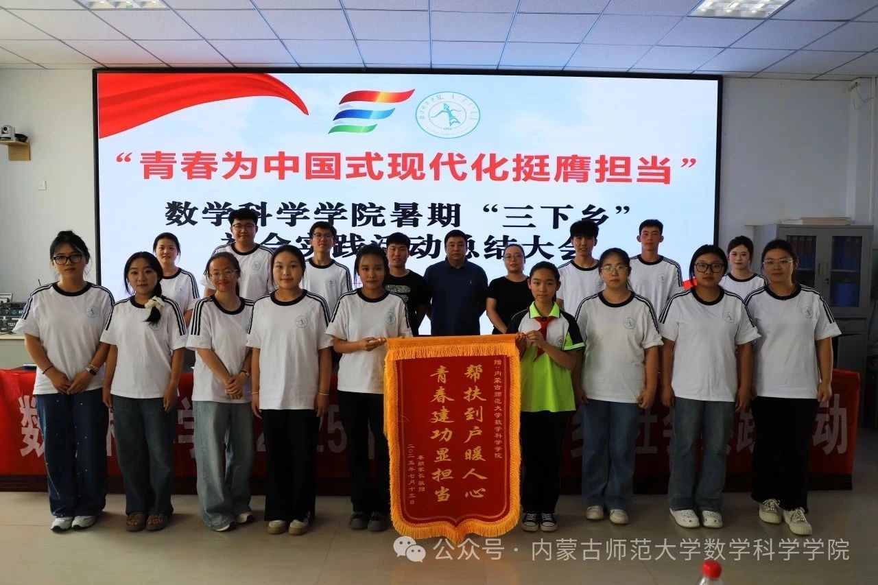 7月15日下午,yl6809永利检测中心2025年暑期“三下乡”社会实践活动总结大会在四子王旗实验小学召开。本次大会以“青春为中国式现代化挺膺担当”为主题,全面回顾和总结了此次“三下乡”实践活动的丰硕成果,展现了青年学子在社会实践中“受教育、长才干、作贡献”的青春风采。