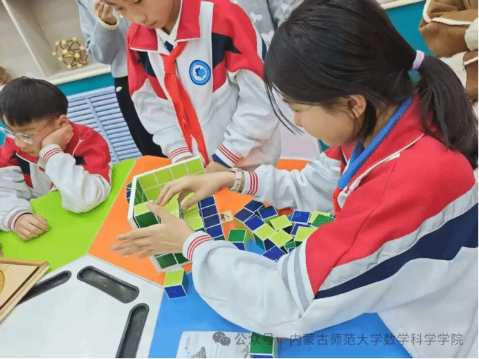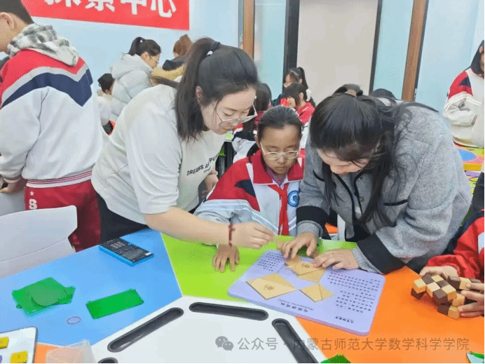 为夯实基础学科建设,弘扬数学文化魅力,激发青少年数学学习兴趣,3月18日上午,我院顺利开展“品数学之美·探学科之趣”主题科普活动,在互动体验环节,来自附属学校的小朋友们满怀好奇与热情,走进明安图数学探索中心参观学习,并参与趣味数学实践体验。2025级学科教学(数学)专业硕士研究生全程带领、悉心指导,用生动有趣的方式讲解数学知识、引导实践操作,让小朋友们在动手动脑中感受数学的奇妙与乐趣。
