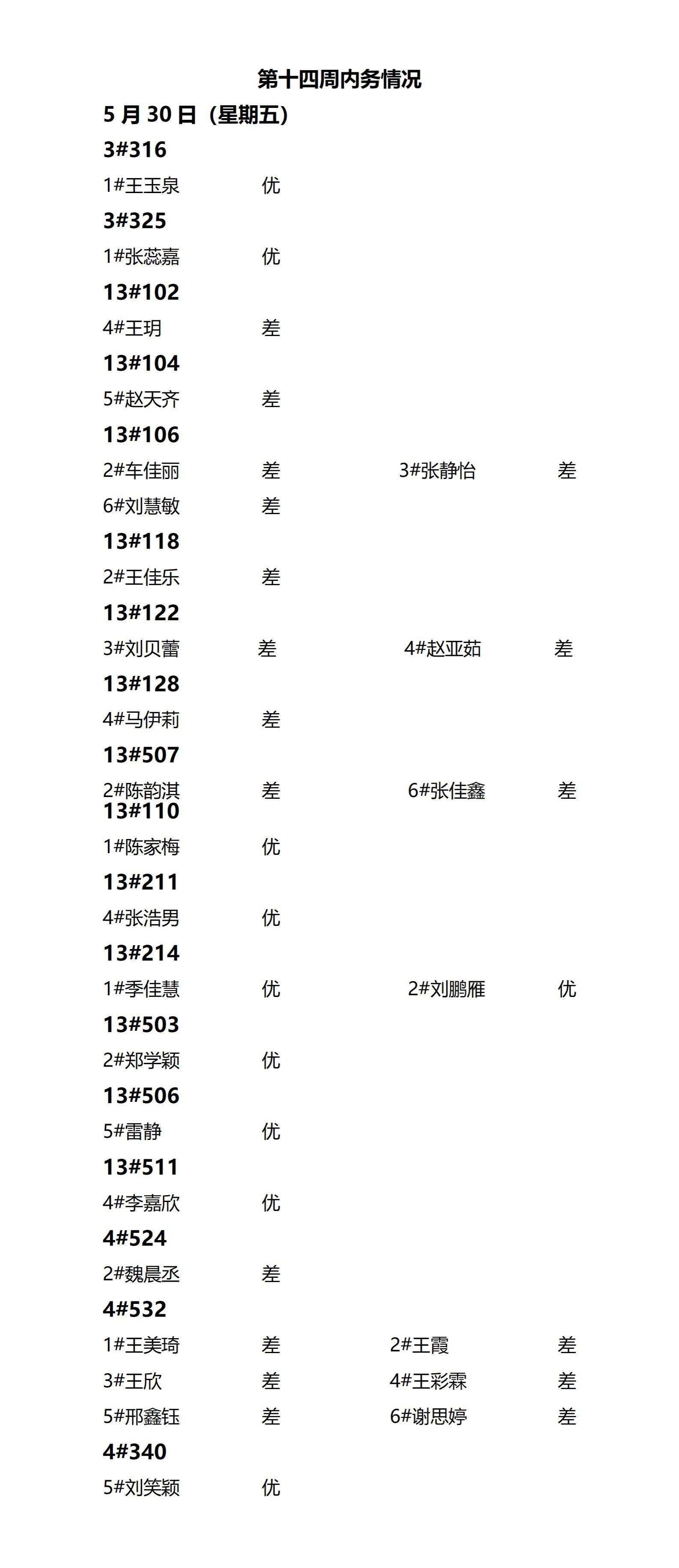 yl6809永利检测中心2024——2025年度第二学期第十四周通报情况