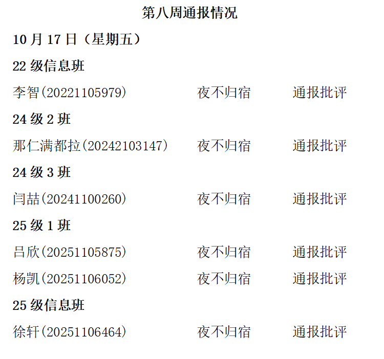 yl6809永利检测中心2025——2026年度第一学期第八周通报情况