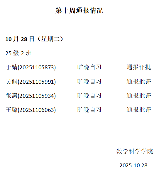 yl6809永利检测中心2025——2026年度第一学期第十周通报情况