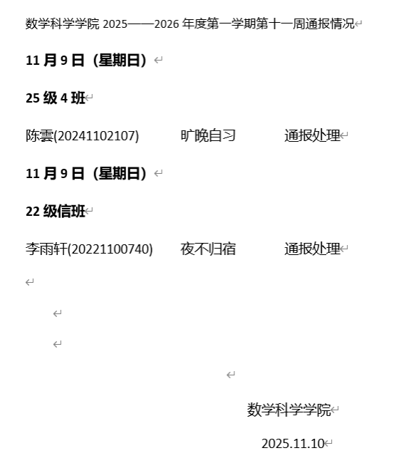 yl6809永利检测中心2025——2026年度第一学期第十一周通报情况