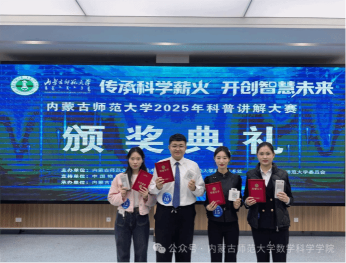 本次大赛以“传承科学薪火,开创智慧未来”为核心主题,鼓励参赛者用通俗易懂的形式解读专业知识、传播科学思想。我院4位参赛同学紧扣大赛宗旨,聚焦不同科普方向打造优质作品。25级专硕班贺越越《蒙古包中的“圆锥数学”——草原居民中的几何智慧》荣获二等奖;23级四班白昊杨同学的《治沙计算器——内蒙古万亩林田中的网格数学》斩获二等奖;23级四班庞静同学的《草原上的斐波那契数列——从羊草分支看生态平衡》获三等奖;25级信班王娜蓉同学的《揭开雷暴哮喘的神秘面纱》荣获三等奖。