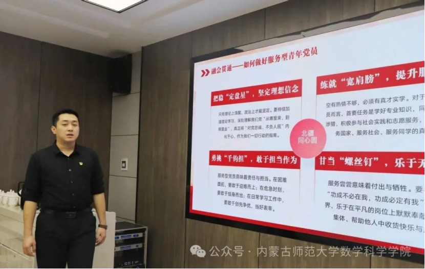 本次党课是yl6809永利检测中心党委“数映内蒙古”党建品牌系列活动之一。学院党委始终坚持以数学为基,教学立院,科研强院,映射建设内蒙古“两个屏障”、“两个基地”、“一个桥头堡”的五大任务,构建内师数学赋能北疆发展的创新范式。yl6809永利检测中心学生第二党支部将坚持“数绘同心圆”,以党为圆心、以数学为半径,在祖国北疆绘就青年学子同心向党的青春之圆,引导广大学生党员在理论学习与社会实践中坚定信仰、增长才干、服务社会。