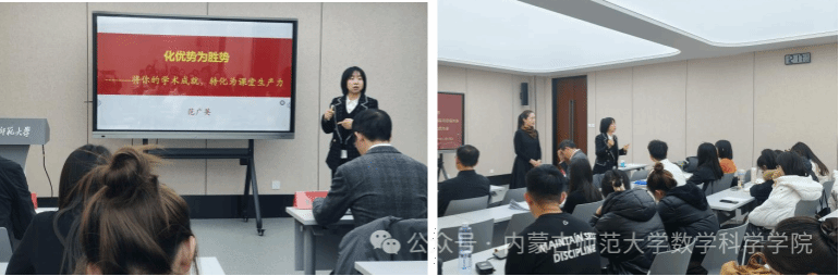 随后,张生老师与范广英老师分别为大家带来专题报告。张老师以《让教科书成为备课的源头活水》为题,结合实例从“让教科书成为备课源头活水、让问题成为备课思维主线、让规范成为备课良好习惯”三个维度深入阐述了有效备课的方法;范老师则以《化优势为胜势,将你的学术成就转化为课堂生产力》为题,围绕“学生到教师的身份转变、教师职业备考建议、教师职业生涯规划”这三大要点,系统讲解了如何成长为优秀教师及幸福教师,为即将踏上工作岗位的毕业生指明了前进方向。
