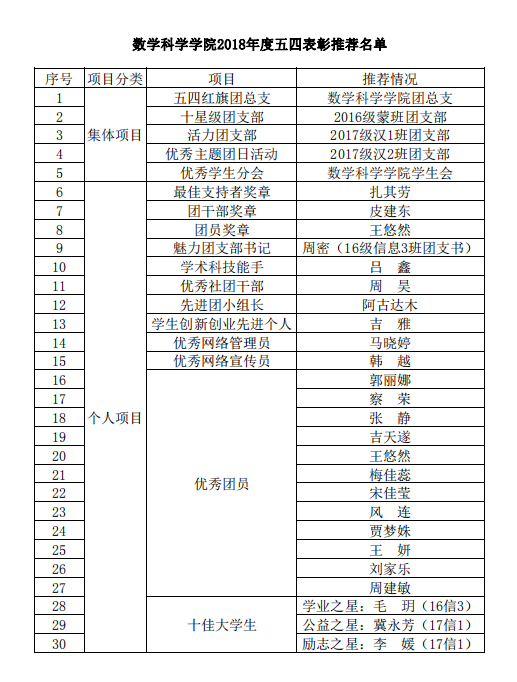 依据《关于开展2018年度“五·四”系列表彰的通知》(内师团发〔2019〕 号),按照《永利官网团员手册》有关规定开展评选活动,现将推荐名单公示如下: