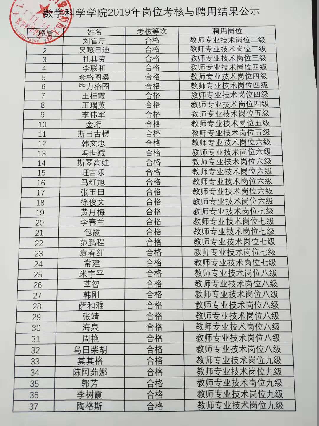 yl6809永利检测中心2019年岗位考核与聘用结果公示