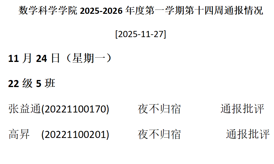 yl6809永利检测中心2025-2026年度第一学期第十四周通报情况