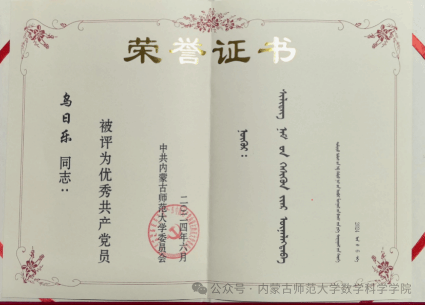 未来征程上,乌日乐将继续以“蒙古马精神”为引领,在数学与人工智能交叉研究的道路上踔厉奋发、笃行不怠。他将始终牢记青年党员使命,以扎实的科研能力、坚定的责任担当践行“请党放心,强国有我”的青春誓言,为服务国家和自治区发展战略、实现中华民族伟大复兴的中国梦贡献青年智慧与青春力量。