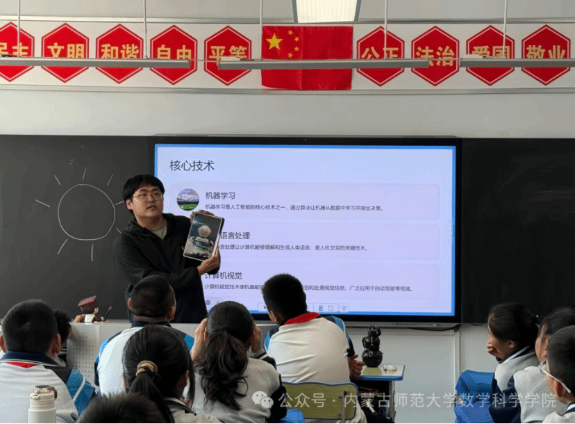 乌日乐始终牢记党员身份,认真学习党的创新理论,积极践行“铸牢中华民族共同体意识”,在思想、政治、行动上同党中央保持高度一致。他热心投身志愿服务,深入和林格尔县乳业开发区第一小学开展“数映北疆 科普筑梦”科普活动,运用专业特长讲解人工智能知识,相关事迹被《内蒙古电视台》等媒体报道。通过不断锤炼,乌日乐逐渐成长为一名有责任、敢担当、肯奉献的学生骨干,2024年他荣获“永利官网优秀共产党员”称号,全校仅6名学生党员获此殊荣。