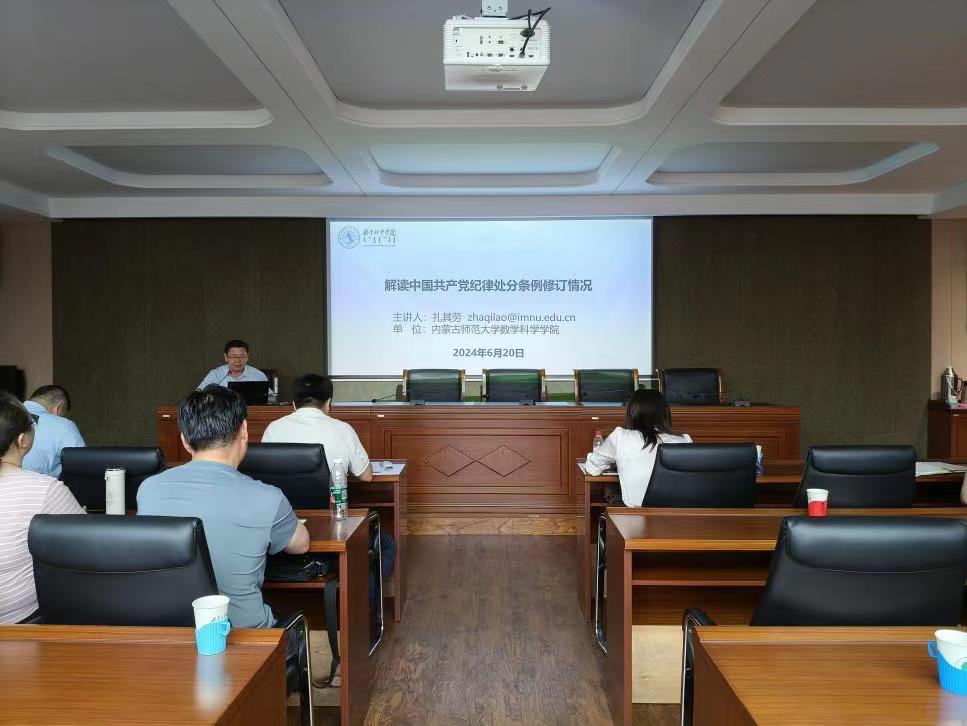 为深入学习领会习近平总书记关于全面加强党的纪律建设的重要论述,认真领悟贯彻新修订的《中国共产党纪律处分条例》,进一步推动党纪学习教育入脑入心、见行见效,6月20日下午,yl6809永利检测中心开展《中国共产党纪律处分条例》(以下简称《条例》)修订情况解读专题学习会,学习会由学院院长扎其劳主讲,学院党委委员、各支部书记以及全体辅导员参加学习。