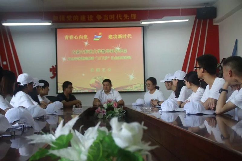 皮建东老师为大家详细介绍了本次实践活动所到地点、环境及活动目的。季建光老师,李帅老师也分别强调了此次“三下乡”的安全问题及各种注意事项,并举行了授旗仪式。