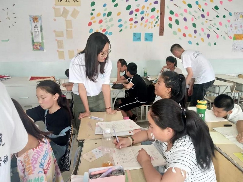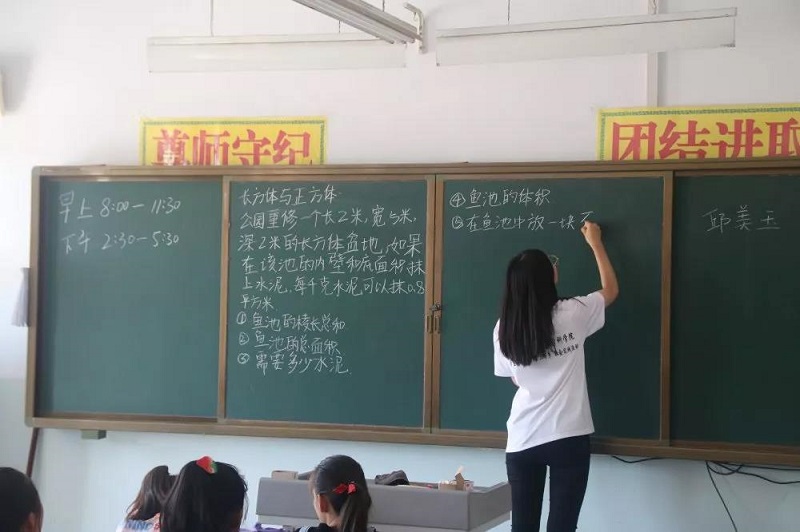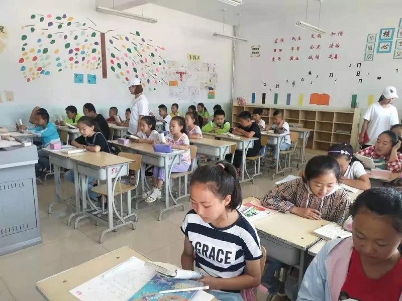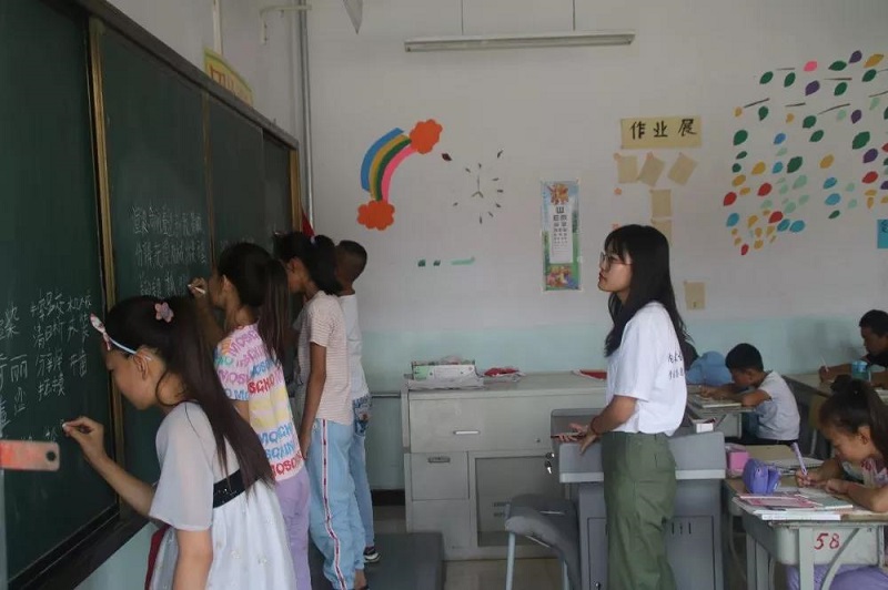 志愿者小老师们每天为孩子们精心准备语文、数学、英语课,大班讲课的同时,一对二式辅导每一个学生完成假期作业,解决孩子们课业上的问题。