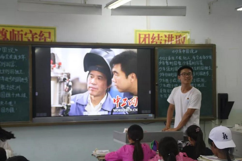 我们不仅有课堂学习,还有兴趣课程,志愿者小老师带领孩子们上室外体育课、室内心理游戏课、音乐课以及思政课堂。