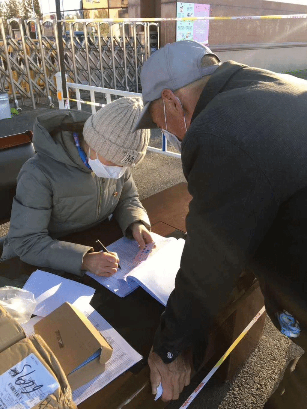 佩戴好工作证,做好个人防护,在盛乐校区北门执勤点,协助保安登记出入校园人员的信息,为物业、后勤、幼儿园工作人员及家属区居住的非师大工作人员发放、登记通行证,收发在校人员的快递信件……即使骄阳一片好,仍有朔风侵骨寒,双手被冻红、冻僵,在值班过程中,李春兰老师一定面临着更多我们无法了解到的困难,但她依然选择了坚持,勇担先锋,敢打头阵,这是责任,是党员本色!
