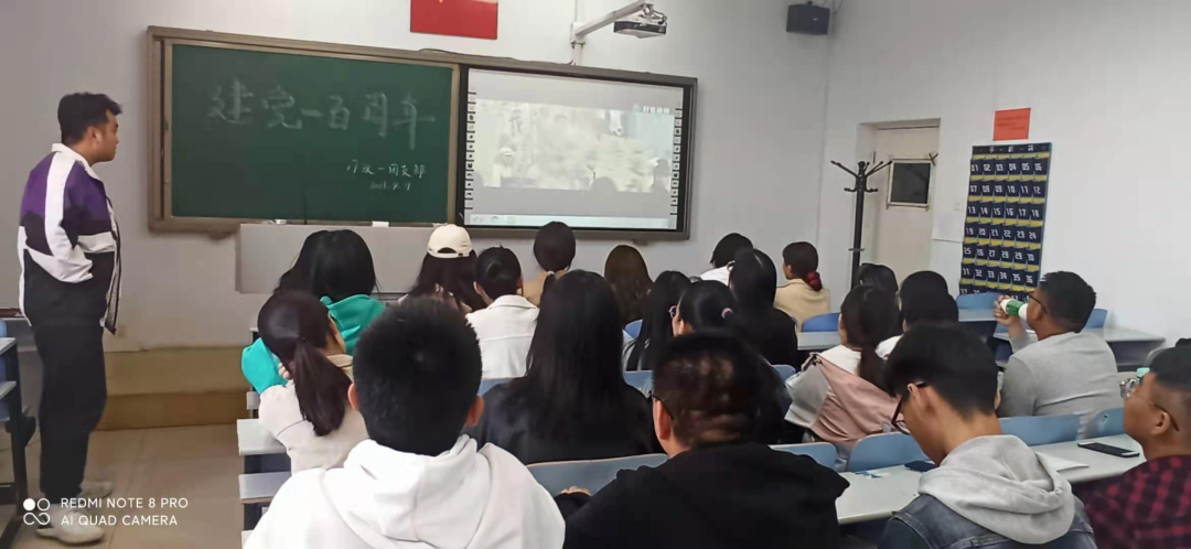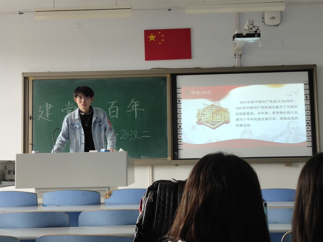 此次团日活动,同学们首先了解了党史背景,在团支书的组织下同学们上台交流分享建党100周年的相关知识。活动最后,同学们观看了《党史故事100讲》。