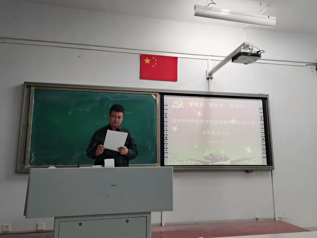 2021年5月17日晚,yl6809永利检测中心数学与应用数学学生党支部于科技楼334教室召开讨论发展对象转为预备党员会议。此次会议由数学与应用数学学生党支部书记皮建东老师主持。数学与应用数学学生党支部党员、预备党员及入党发展对象参加此次会议。