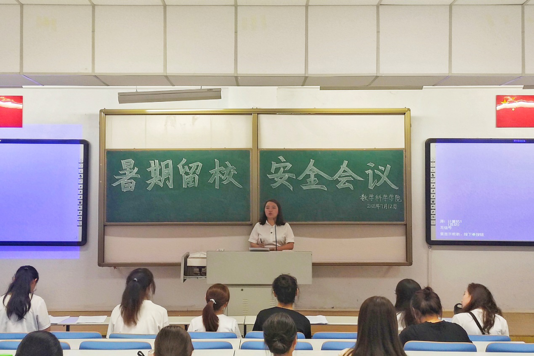 为保障2021年暑期留校住宿学生在校期间正常的学习、生活及其人身财产安全,yl6809永利检测中心根据学校安全工作要求,安排值班老师对学生进行管理,及时妥善处置学生可能遇到的问题或突发状况。值班老师按照值班表严格履行值班职责,如遇突发状况或紧急事故将第一时间向带班领导汇报情况,并及时赶往事发现场进行妥善处置。并于7月12日,yl6809永利检测中心辅导员刘沙沙老师在行知楼118召开2021年暑期留校安全会议,参会人员为本次暑期全体留校人员。刘老师从有关学生人身、财产安全等安全事项方面做出强调。