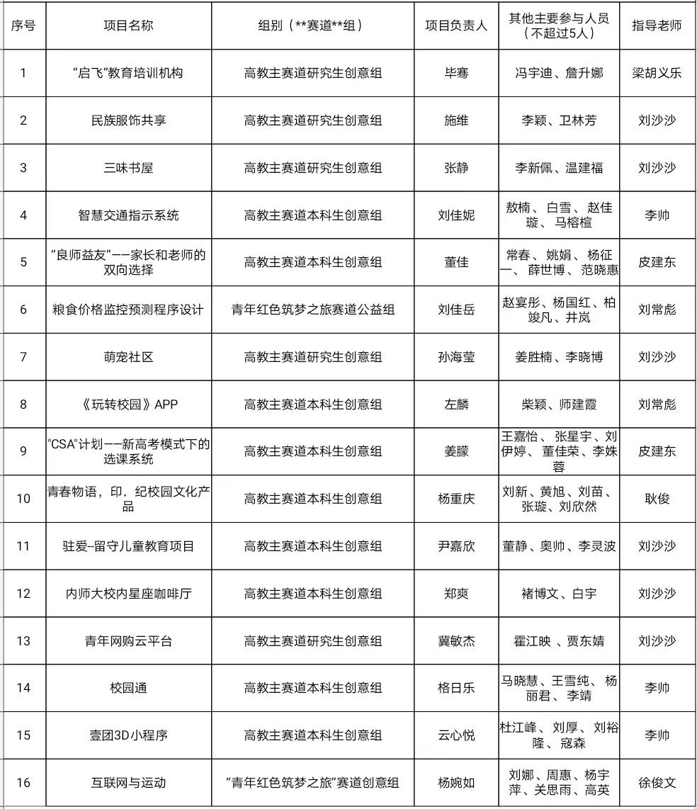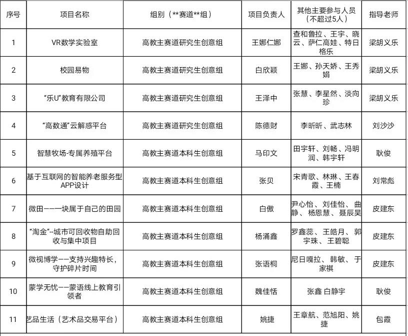 第七届中国国际"互联网+"大学生创新创业大赛yl6809永利检测中心院赛初审名单:
