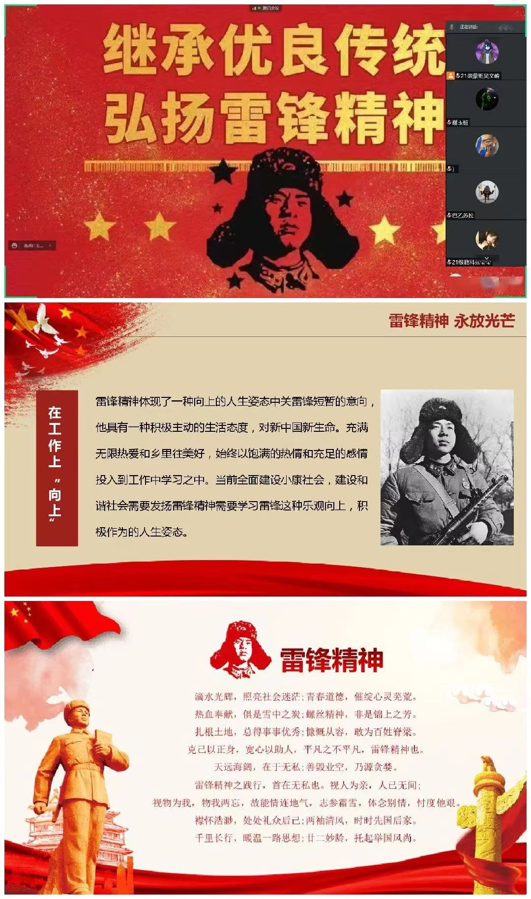 在3月5日雷锋同志纪念日这一天,yl6809永利检测中心组织各班进行“雷锋精神大家谈”主题班会,旨在激发大学生学习雷锋精神、保卫雷锋精神的热情。
