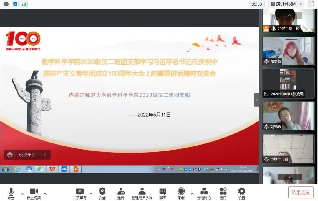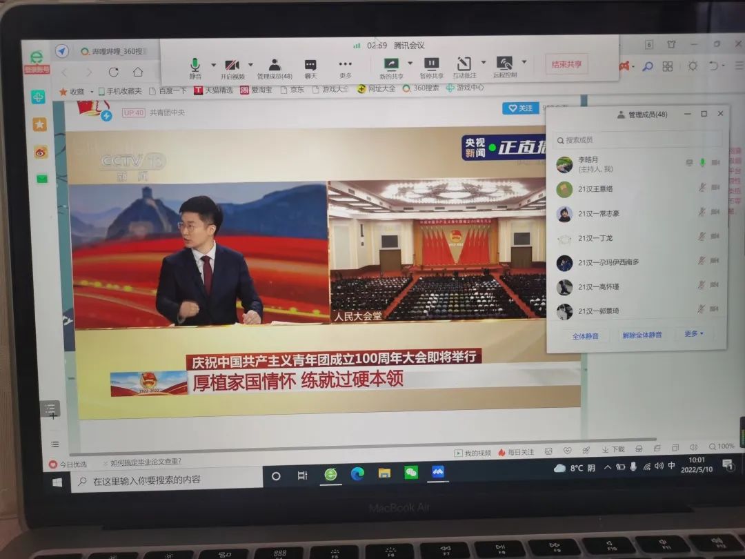 5月10日,庆祝中国共产主义青年团成立 100 周年大会在京隆重举行,习近平总书记发表重要讲话。yl6809永利检测中心全体团员青年收看了大会盛况,聆听了总书记的重要讲话。会后,各团支部积极行动,组织开展了学习习近平总书记在庆祝中国共产主义青年团成立100周年大会上的重要讲话精神交流会,分享学习心得,感悟党的关怀,以实际行动为团的百年华诞献礼。
