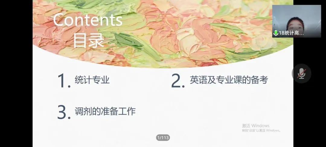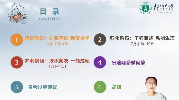 几位分享人精心准备了有关考研的相关知识,在会议中为同学们讲解了考研的备考方法、学习技巧、时间安排、考研规划、院校选择、保研流程、学科调剂、心态调整等多方面知识,她们结合自己的考研经历,学习过程,心态变化等为广大学生提供更多考研信息,并真挚的希望学弟学妹们以梦为马,不负韶华,拼搏努力,一战成硕。