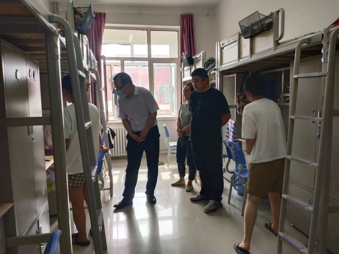 本学期学生返校以来,同学们有爱、有责、有序地开启了新学期的学习与生活。夏日炎炎,防暑更要防“疫”,为进一步了解返校学生思想、学习和生活状况,8月2日,我院党委书记李联和和全体辅导员深入学生宿舍进行走访慰问,在与同学们的亲切交谈中,了解学生所需所想,鼓励学生潜心学习。同时,嘱咐同学们一定要做好防暑降温,保持宿舍清洁,注意用电安全,积极配合学校做好疫情防护工作。