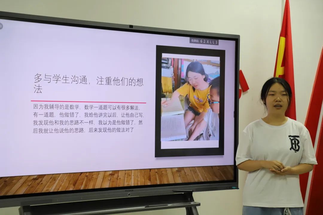 在会议期间,志愿者与大家讲述自己授课讲学的经历,分享在“三下乡”活动期间与学生们的有趣瞬间以及对教师职业的新的理解和体会。
