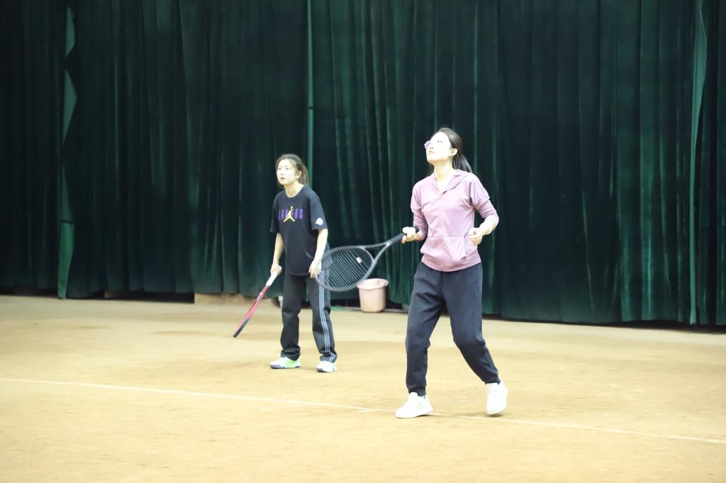 赛场上运动员们在快节奏的比赛中配合默契、各显绝技,挥拍上阵、发球上网、底线穿越、反手击球等网球技巧一气呵成,有力的击球声响彻整个网球场,现场气氛火热、精彩纷呈。