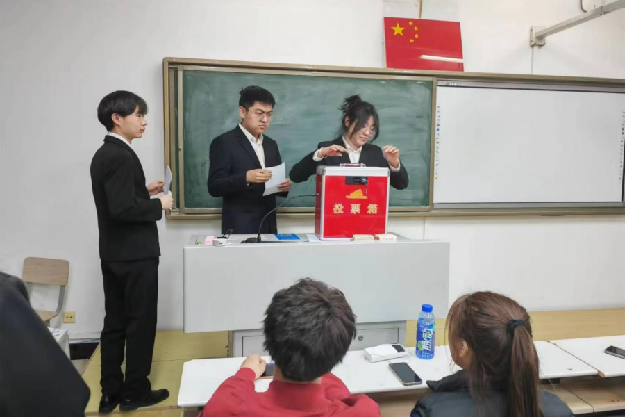 选举大会上,团总支副书记阿茹罕老师宣读《永利官网第三十二次学生代表大会代表选举办法》、《共青团永利官网第十三次代表大会代表选举法》、监票人建议名单和计票人建议名单,经过举手表决,全体通过。经过监票人检查票箱正常并加封后,由计票人领取并向各代表分发选票。各代表填写选票,监票人、计票人投票,并引导其他代表投票。投票完毕后开箱清点选票。