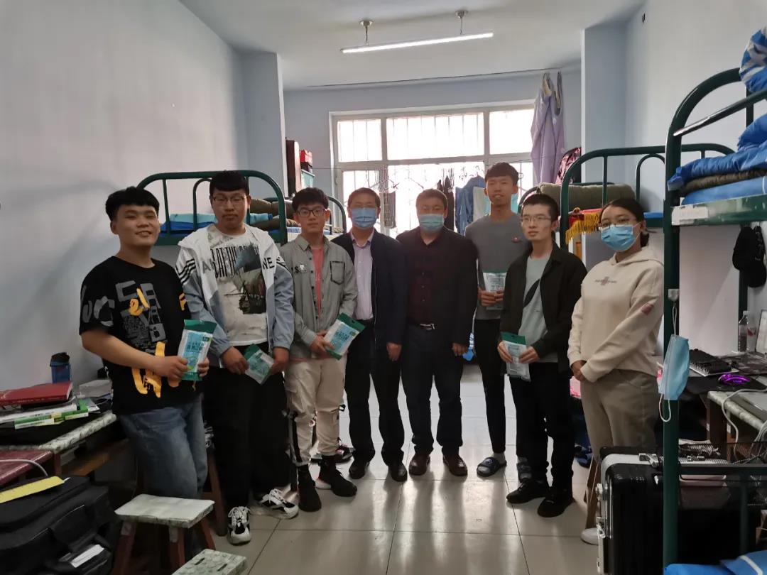 学院党委书记扎其劳教授、党委副书记、副院长季建光老师来到学生宿舍亲切询问学生情况,帮助同学们办理各项手续,搬行李,整理书包,给同学们分发口罩、教材。详细了解学生在家线上学习情况,悉心询问大家的返校生活是否存在困难,并嘱咐同学们有困难随时联系学院辅导员、领导。