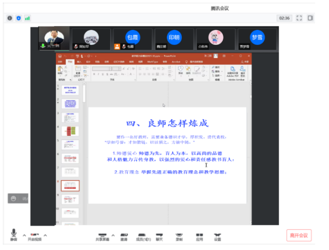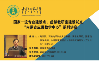 2022年4月20日19:00—21:00yl6809永利检测中心在线开展“国家一流专业建设、虚拟教研室建设、内蒙古应用数学中心”系列讲座。本次特邀请国家教学名师、西安电子科技大学刘三阳教授作主题为“教学能力纵横谈”的报告。报告由包霞副院长主持,院长扎其劳教授、党委书记李联和教授、副书记季建光老师及学院全体教师和慕名而来的其他院校部分教师聆听了本次报告。