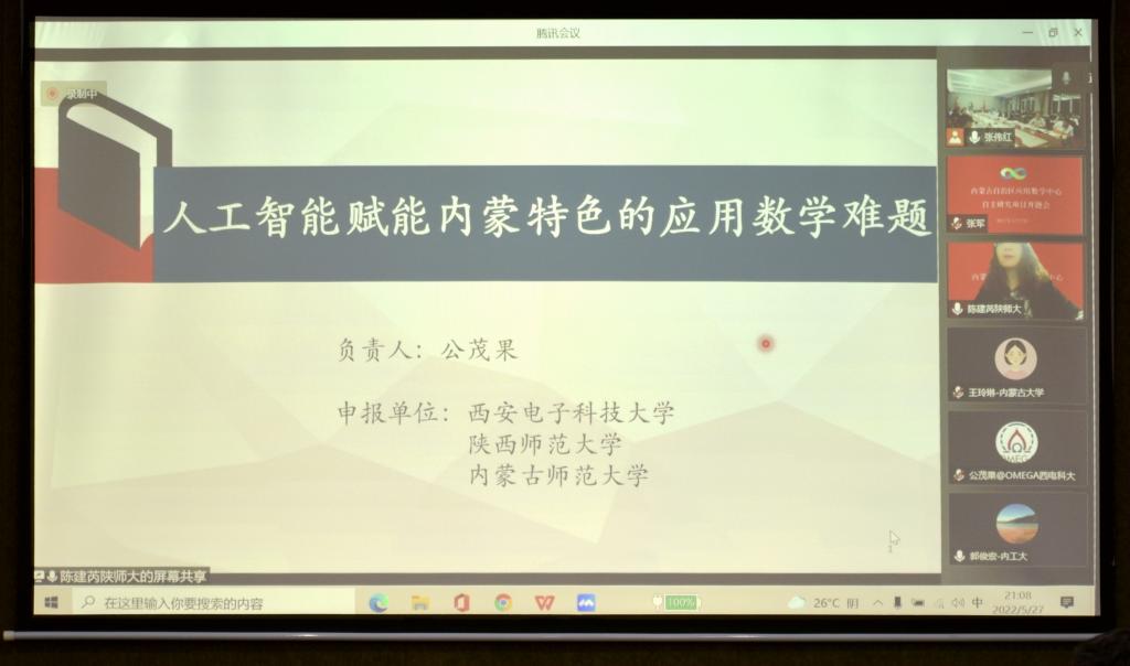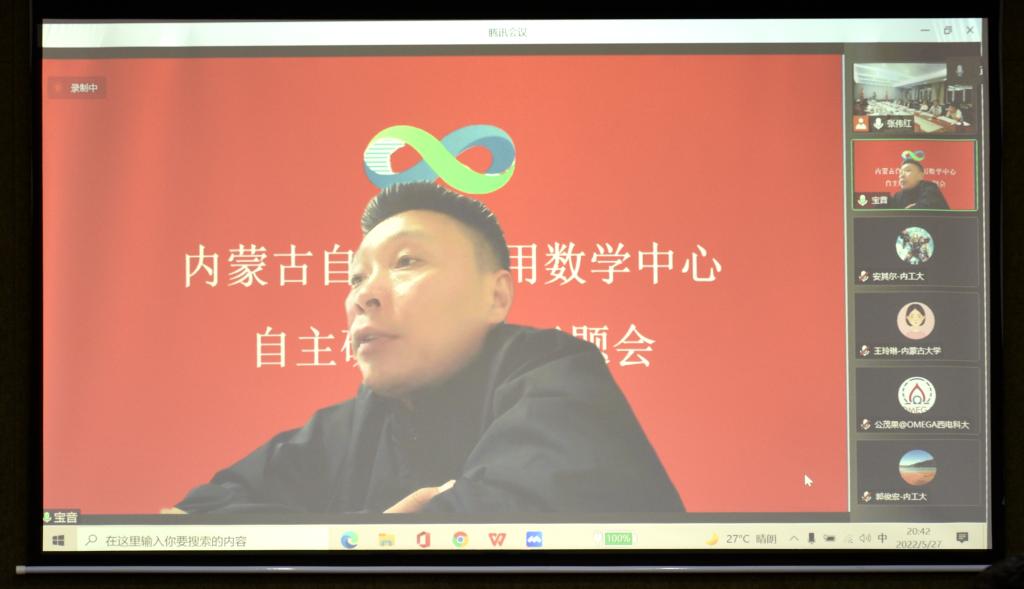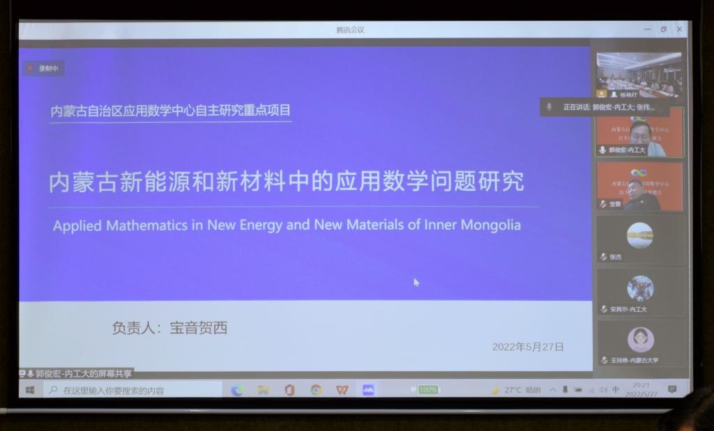 5月27日,内蒙古自治区应用数学中心(以下简称中心)自主研究项目启动会在我校召开,会议采取线上、线下相结合的方式进行。自然资源部第一海洋研究所研究员、中国石油大学(华东)海洋与空间信息学院院长张杰,内蒙古工业大学副校长宝音贺西,西安电子科技大学人才处处长宫茂果等项目负责人以及来自中国石油大学、西安电子科技大学、陕西师范大学、内蒙古大学、永利官网、内蒙古农业大学、内蒙古工业大学、内蒙古财经大学、内蒙古宜和新能源科技有限公司、北京鉴衡认证中心等区外、区内高校和企业的项目团队骨干,我校党委书记阿拉坦仓,党委委员、副校长宫箭及相关部门、学院负责同志共40余人参加项目启动会。项目启动会由中心办公室主任、yl6809永利检测中心院长扎其劳主持。