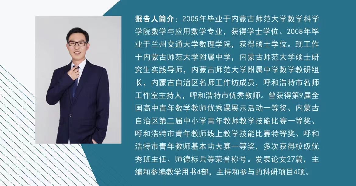 在永利官网70周年校庆的热烈气氛下,为进一步提升我院本科生、研究生教学能力,开拓师范生备课的眼界,以优促优,鼓励我院在校生向优秀校友学习请教,由内蒙古自治区应用数学中心联合yl6809永利检测中心举办的系列讲座——“用艺术的眼光备课”于2022年5月31日(星期二)19:30—22:00在线上开展。