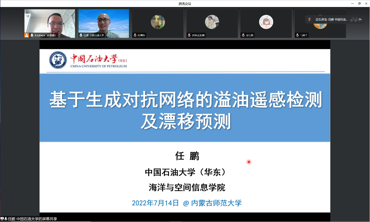 2022年7月14日上午8:30-10:00,yl6809永利检测中心以线上会议的形式举办了迎校庆70周年暨内蒙古自治区应用数学中心系列讲座。特邀请中国石油大学(华东)教授,博士生导师,青岛市“海洋灾害预防检测信息国际联合研究中心”主任任鹏作了题目为“基于生成对抗网络的溢油遥感检测及漂移预测研究”的报告。本次讲座由高性能计算中心主任萨和雅主持,相关方向的教师、研究生和本科生听了本次报告。