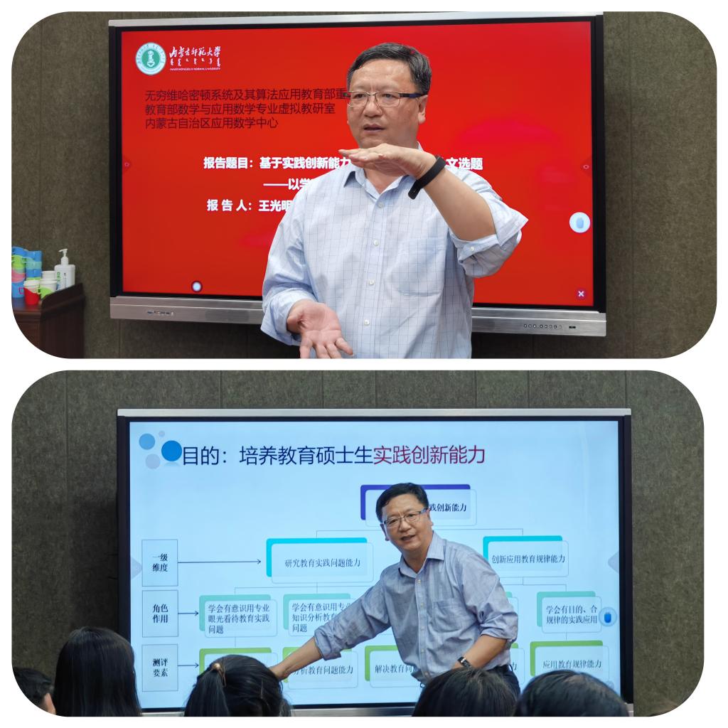 报告过程中,王光明教授与参会师生互动,借助全国教育硕士学科教学(数学)专业的优秀学位论文,不断引导师生聚焦专业选题、开展研究的思路与方法,使大家受益匪浅。