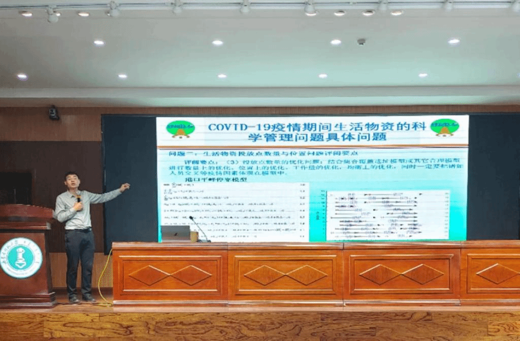 木仁教授就疫情期间生活物资的科学管理问题提出具体问题,会议中强调要运用数学模型对管理问题进行分析,就生活物资投放点数量与位置问题进行详细分析,并结合覆盖选址模型或其它合理的数学模型进行数量、位置、工作量和均衡的优化,同时一定要把诸如人员交叉等疫情因素体现在模型中。