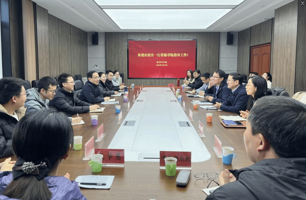 2月25日下午,永利官网党委委员、副校长公茂果、科技处处长咏梅、党政办公室行政科科长侯建老师一行深入数学科学学院开展调研并指导工作。学院班子全体成员、各环节干部和教师代表参加座谈会议。