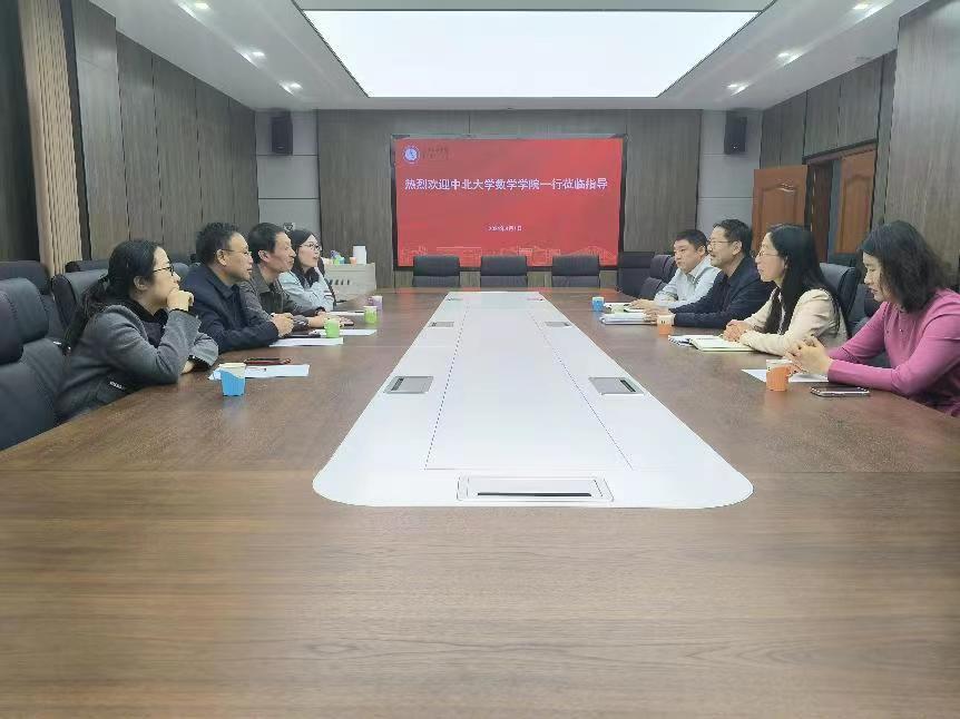 4月1日下午,中北大学数学学院党委书记薛亚奎等一行四人来我院开展调研交流,学院院长扎其劳与部分教师代表参加调研。薛亚奎一行在包霞副院长的讲解下参观了内蒙古自治区应用数学中心和教育部重点实验室(培育),详细了解我院在科学研究、平台建设等方面的做法及成效。