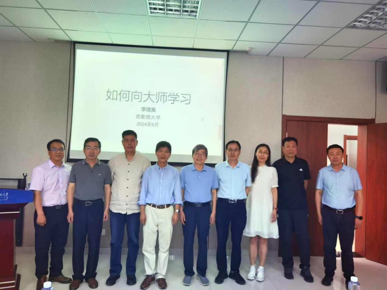 6月13日下午,无穷维哈密顿系统及其算法应用教育部重点实验室、教育部数学与应用数学专业虚拟教研室、内蒙古应用数学中心系列讲座在我校赛罕校区文史楼339学术报告厅举行。著名华人数学家、美国密西根大学教授、清华大学丘成桐数学科学中心兼职教授季理真教授应邀作了题为“如何向大师学习”的学术报告。我校原党委书记、内蒙古应用数学中心主任阿拉坦仓教授,科学技术史研究院郭世荣教授、代钦教授和原研究生院院长刘官厅教授及我院师生90余人聆听了本次报告。报告由包霞副院长主持。