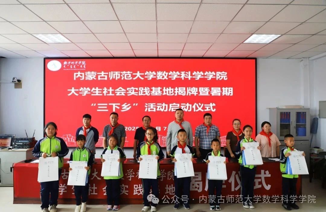 7月7日上午,yl6809永利检测中心大学生社会实践基地揭牌暨暑期"三下乡"活动启动仪式在四子王旗实验小学隆重举行。四子王旗实验小学党委副书记李玉珠、副校长陈云、大队辅导员张超、yl6809永利检测中心党委书记张伟、党委副书记副院长季建光、学生工作与就业办公室主任刘沙沙、副主任萨如拉出席仪式,仪式由yl6809永利检测中心团总支副书记阿茹罕主持。四子王旗实验小学学生代表及学院2025年暑期"三下乡"社会实践全体志愿者共同参与本次活动。