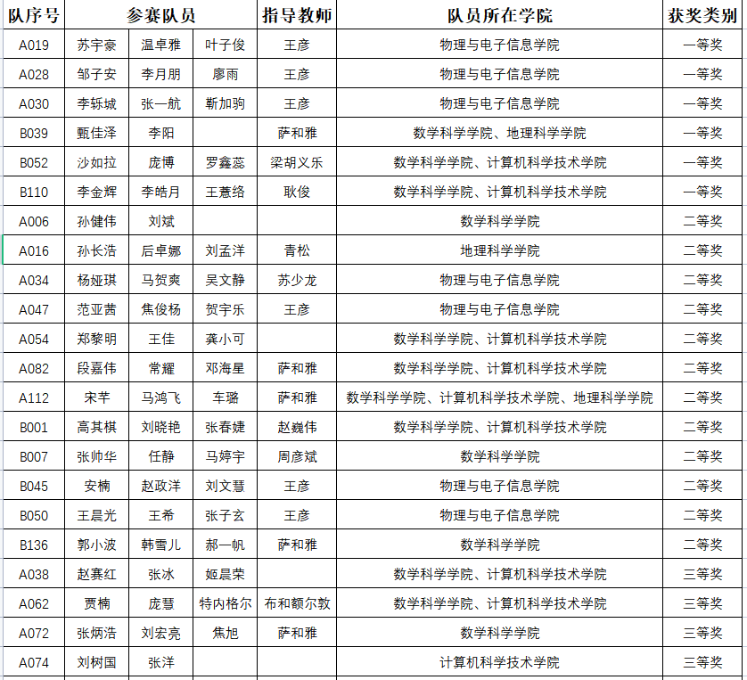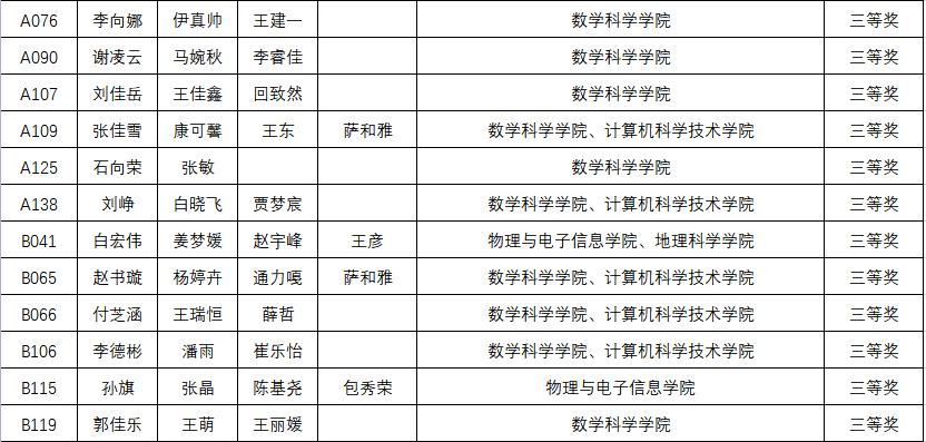 永利官网第六届数学建模竞赛暨2023年全国大学生数学建模竞赛校级选拔赛于2023年5月12日至5月15日举行。本次比赛共有来自yl6809永利检测中心、计算机科学技术学院、物理与电子信息学院、经济管理学院、地理科学学院、化学与环境科学学院、旅游学院、教育学院、心理学院、文学院、外国语学院等11个学院共143支队伍参赛,组委会共回收论文113篇。经过组委会的认真评阅,共评出一等奖6组,二等奖12组,三等奖16组。具体名单如下: